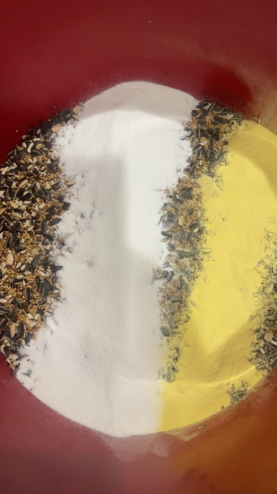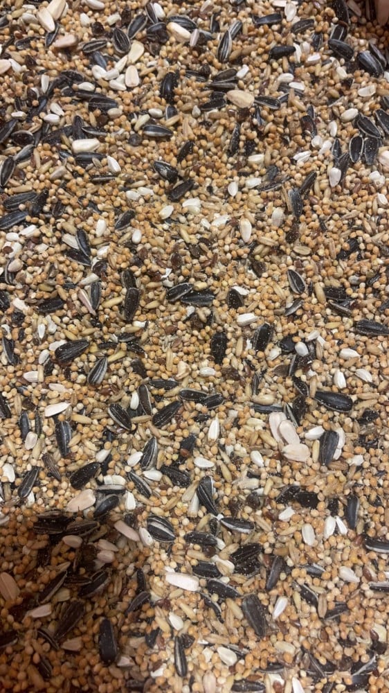 حبوب مشكل طيور متوسطة و الصغيرة ( كنيور و كويكر و كروان و روز ) و مضاف عليها زيت زيتون و فيتامينات و كالسيوم و مكملات خاصة لتحفيز الذكور و الإناث على الانتاج و مضافة ب نسب متوازنة